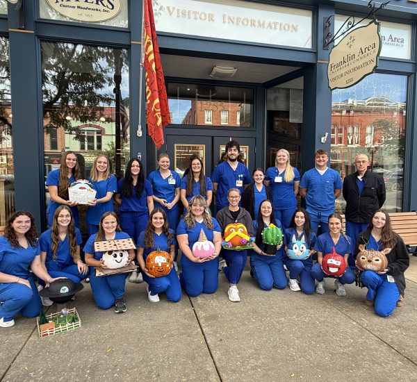The UPMC Northwest School of Radiology is raising funds with an online pumpkin auction. Between now and 11:55 p.m. on Monday, October 6, bid to purchase a pumpkin painted and decorated by the radiology students. The pumpkins are on display in the window of the Franklin Area Chamber of Commerce. Hidden beneath each pumpkin is