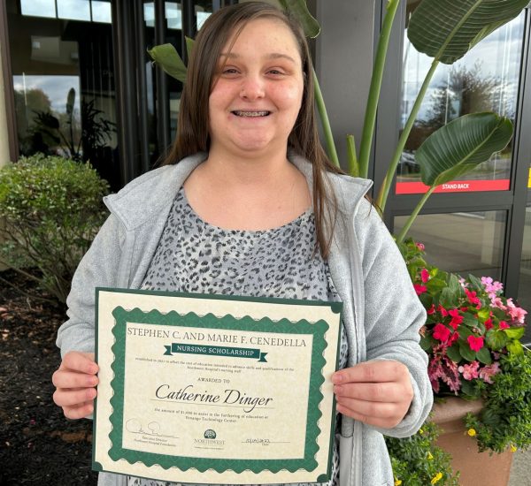 Two UPMC Northwest employees were recently awarded Cenedella Nursing Scholarships. Christopher Frye, a Patient Care Technician in the Emergency Department, is pursuing an Associate of Science in Nursing from Pennsylvania Western University-Clarion Venango. He anticipates graduating in May 2024 and taking the NCLEX examination to become a Registered Nurse. Catherine Dinger, a Certified Nursing Assistant